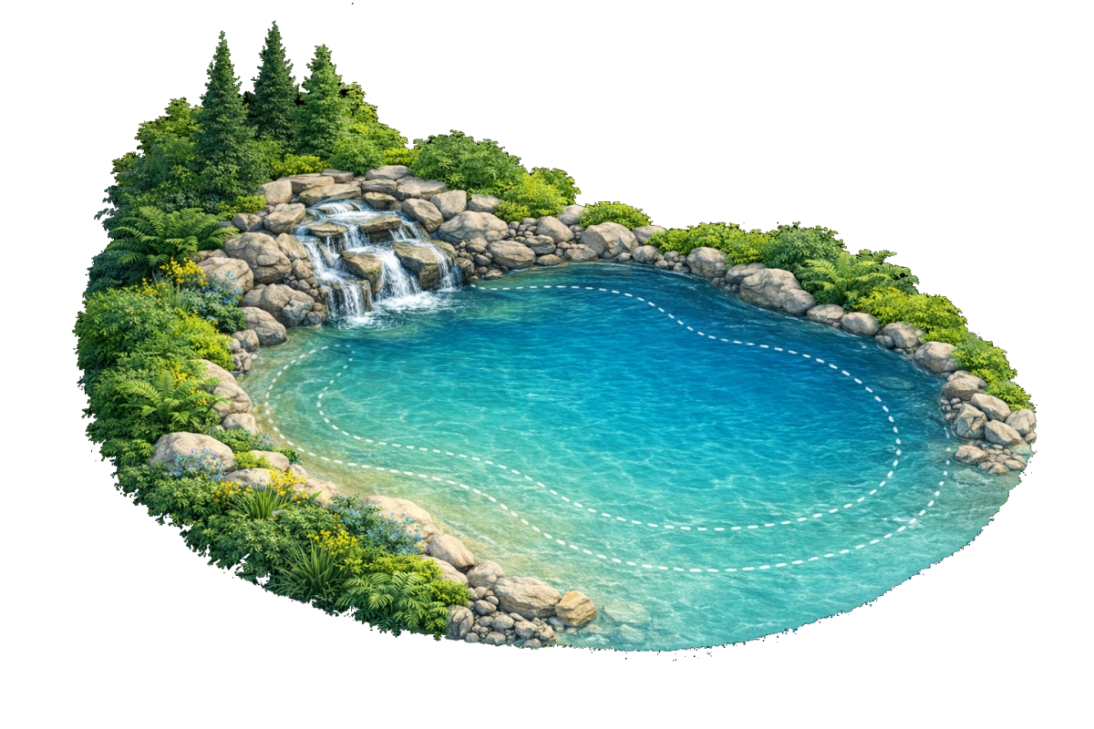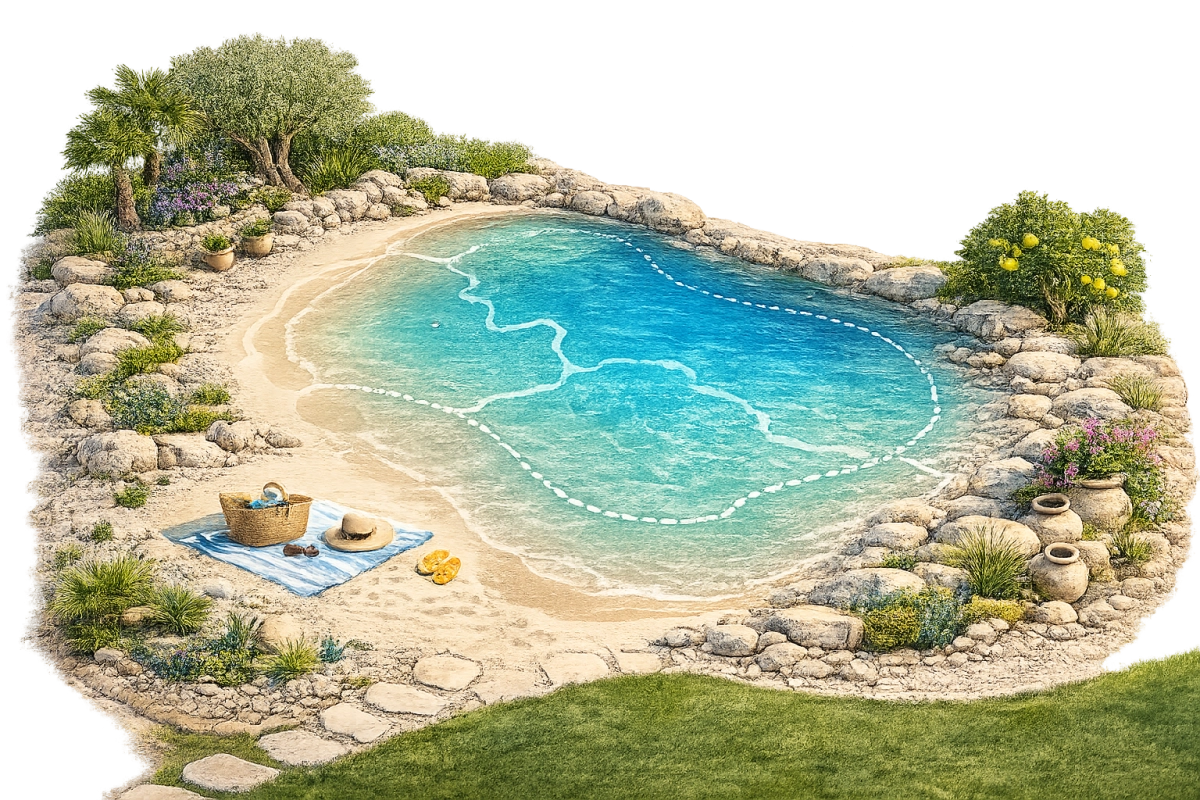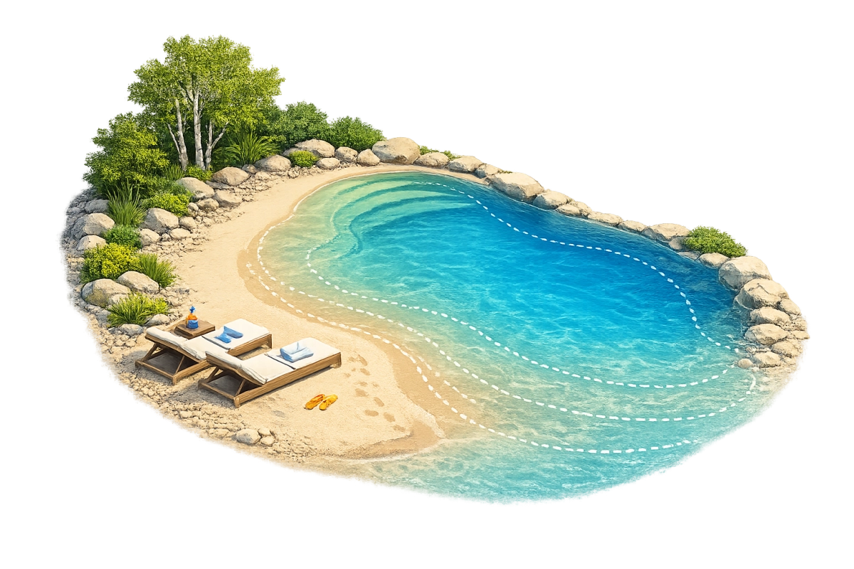 C’est une piscine sur mesure qui imite les courbes et l'esthétique d’un décor naturel : plage douce, eau turquoise, rochers, îlots, cascade… L’objectif est de créer un véritable lagon dans votre jardin.